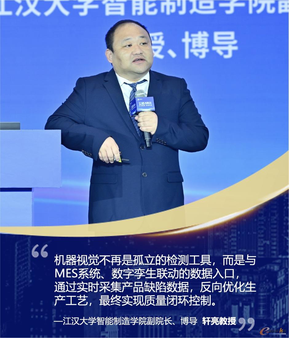 Professor Xuan Liang, Vice Dean of the School of Intelligent Manufacturing at Jianghan University and Doctoral Supervisor, delivered a speech of "Architecture and Integration of Smart Manufacturing Systems Based on Industrial Machine Vision". He systematically explained how machine vision becomes the perception core of intelligent manufacturing. He pointed out that inspection runs through the entire process of intelligent manufacturing and provides key technical support for enterprises' intelligent transformation and digital upgrading.